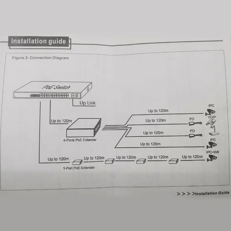 POE 4-Ports IEEE802.3af 720P1080P Network camera Extend 120m transmission distance with 10/100M LAN